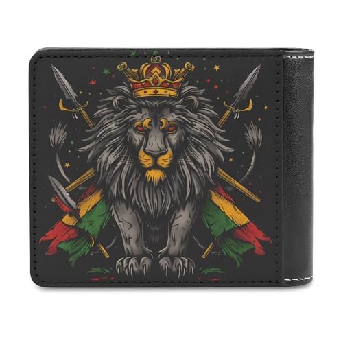 Lion Flag Reggae Rastafarian Rasta Bifold Wallet PU Leather Wallet Slim Front Pocket Durable Credit Card Holder for Men 1