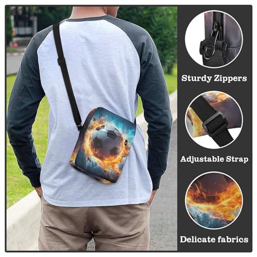 Crossbody Bag Blue Flame Fire Football Messenger Bag for Women Men Purse Shoulder Bag Satchel Bag with Adjustable Strap 214B0326 7
