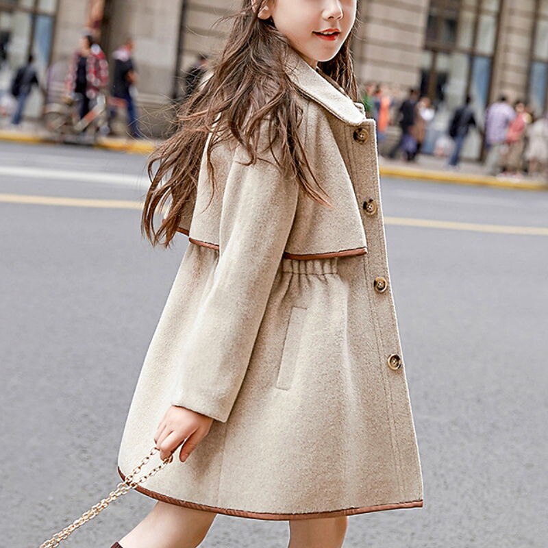 More information about Kids Girls' Coat Long Sleeve Beige Plain Pocket Fall Winter Active Daily 3-13 Years