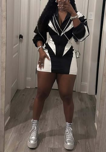 • Features: Two piece skirt set for women features a stylish crop top, mock neck, long sleeve with zipper jacket and mini skirts set, color block design, slim fit,high waisted