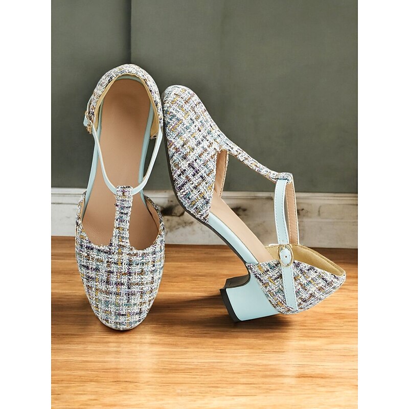 Women's 1950s Tweed T-Strap Mary Jane Heels – Vintage-Inspired Low Block Heel Shoes for Elegant Office Wear, Weddings, and Special Occasions 15