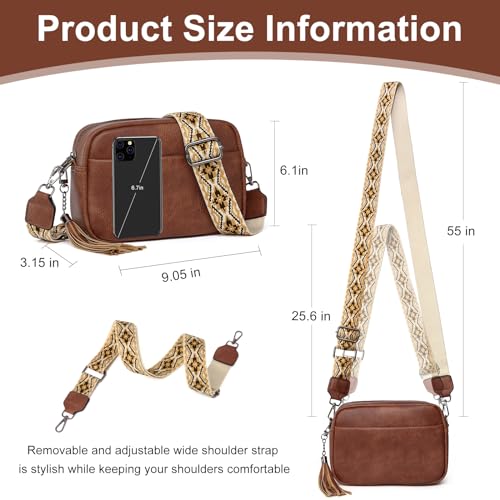 • Fashionable and Secure design:The removable tassel, which doubles as a key hanger,adds elegance and charm to the small crossbody purse.The interior card slots are also RFID Blocking to safeguard your personal information,giving you greater peace of mind while traveling