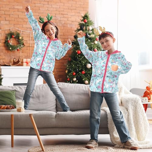 Rabbit Flower Toddler Fleece Jacket Baby Girls Hooded Zipper Long Sleeve Thick Warm Outerwear 3-10 Years 3