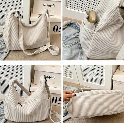 Fabric type: CroduroyOrigin: ImportedClosure type: ZipperLining: PolyesterMaterial: Selected high-quality corduroy material, which is reusable, durable and comfortable. This casual shoulder bag is made with dense thread and exquisite workmanship. All seams are reinforced and sewn to ensure their durability.Large Space: Size approx 14.9L*4.7W*14.6H. Large room for your stuff for travel and daily necessities such as wallet, glasses, cellphone, ipad, power bank, cosmetics, lipsticks, keys and others. Top zipper closure keeps your items safely.Practical Design: The spacious space includes 1 zip pocket and 1 slip pocket inside, 1 rear zip pocket and 2 side pockets outside, the crossbody purse is multi-pocket design that can better organize your daily items to prevent loss. retro solid design, simple, cute and fashionable. Easy to match with all clothes in your wardrobe.Occasions: The strap of this bag is adjustable. Convertible design allows for both crossbody and shoulder wear, with comfortable and soft strap for all-day carrying. This shoulder bag is suitable for a variety of occasions, including commuting, parties, shopping, travel, daily outings, and more.Gift Option: An ideal gift for birthday, anniversary, Christmas, valentine's day, thanks-giving, etc, for friend, family members and lover. Perfect for everyday use. supreme materials and excellent craftsmanship ensure long-lasting durability.