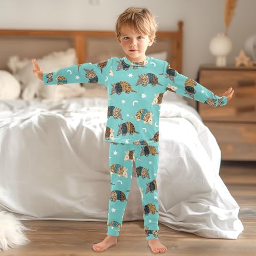 Pajama Sets Long Sleeve Animal Armadillo on Blue Soft Comfy Sleepwear 2 Piece PJS 3-8T 2
