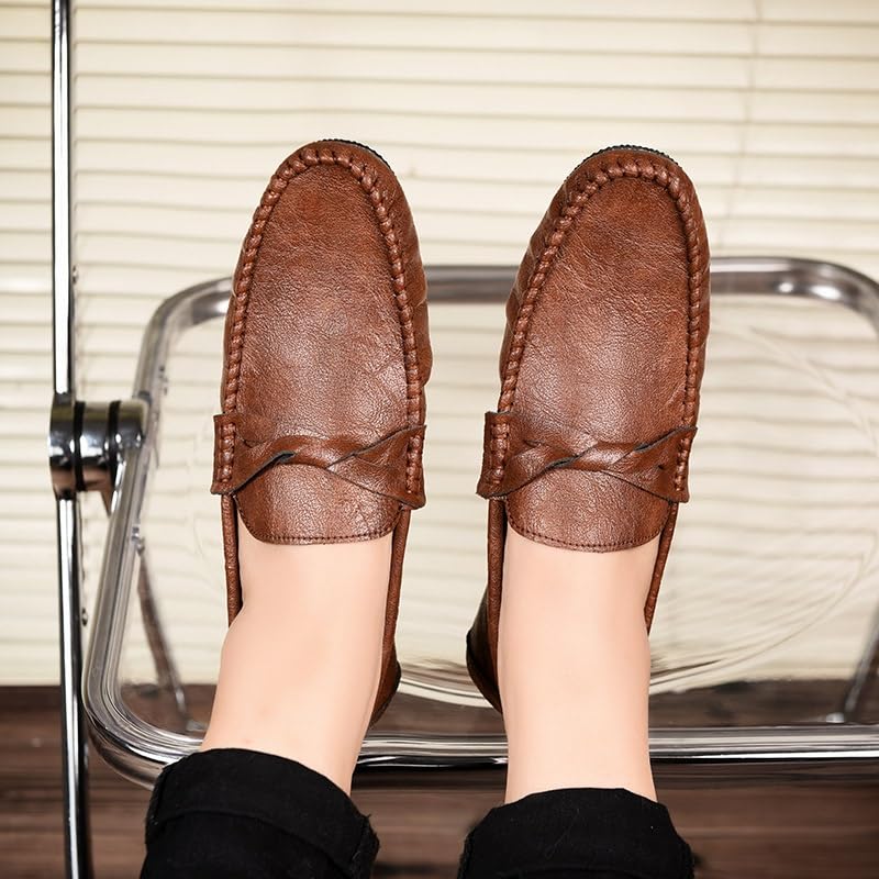Men's Loafers Solid Color Round Toe Vegan Leather Loafer Shoes Flexible Comfortable Lightweight Party Fashion Slip-ons 6