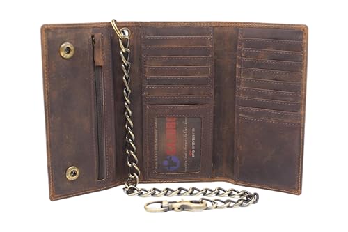 More information about RFID Blocking Mens Tri-fold Long Style Crazy Horse Leather Steel Chain Wallet, (Skull Brown)