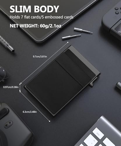 • BUILT TO LAST - Designed for portable daily use. The forged 6061-T6 aerospace-grade aluminum construction provides added durability & weight savings over a traditional wallet. Slimline pocket-sized small wallet(3.81*2.55*0.43 Inches), convenient and safe to put in any pocket and carry around.