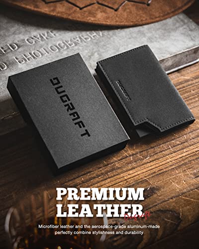 HOT ! DUGRAFT Bifold Pop Up Wallet for Men, Slim Leather Credit Card Holder with Zipper Minimalist Women Magnetic Cash Coins Pocket Wallets RFID Blocking(Black)