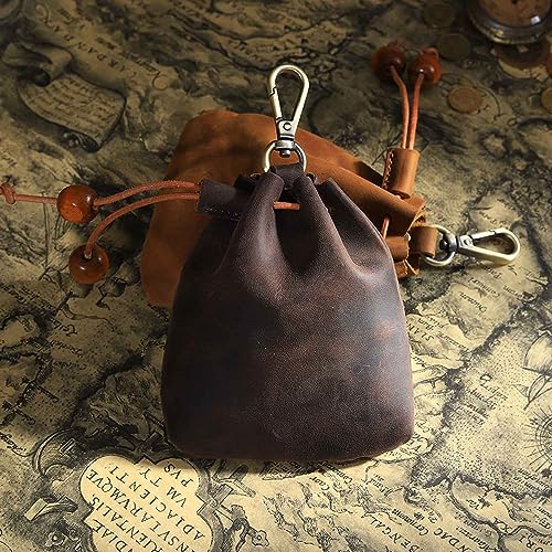 1Pcs Leather Vintage Drawstring Coin Purse,Retro Nordic Portable Coin Purse Medieval Belt Pouch Mini Pouch Coin Organizer Drawstring Small Hanging Bag Key Bag for Men and Women (Brown) 1