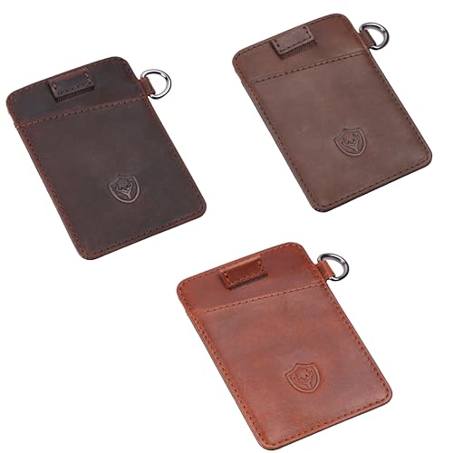 More information about URBAN CREW Slim Leather Card Holder for Men – RFID Blocking Minimalist Front Pocket Wallet with Key Ring | Compact Anti-Theft Credit Card Case for Travel & Daily Use (Brown)