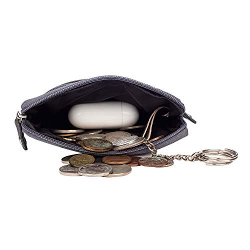 FINELAER Genuine Leather Coin Pouch Zipper Wallet and Change Purse for Men and Women (Grey) 6
