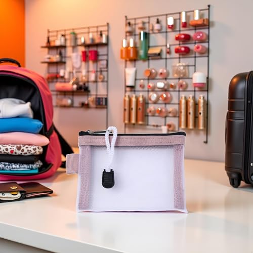 Jowxsx Pink Mesh Storage Bags Casual Travel Mini Zipper Pouch Small Wallet Bags Nylon ID Credit Card Holder Mesh Cosmetic Bag Transparent File Bag 3