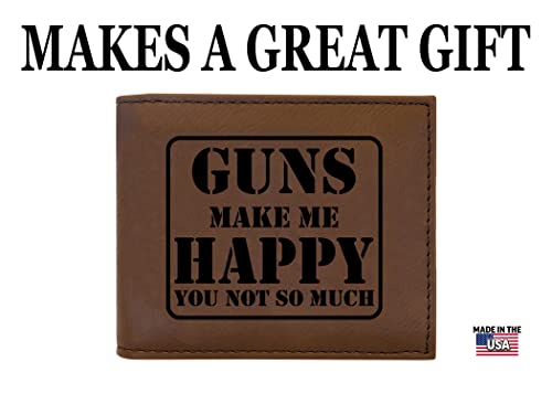 • Funny Sarcastic Joke Guns Make Me Happy You Not So Much Bi-Fold Leather Wallet Makes a Great Gift To Any Hunter