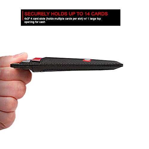 • ✅ [COMPACT DESIGN] - 4 card slots (holds multiple cards per slot) w/ 1 large top opening for cash. Lightweight and compact design, this wallet will not add unnecessary bulk or weight, you can also put in to your bags or pockets on your coat or pants.