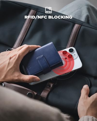 HOT ! VULKIT Mens Leather Trifold Wallet with Airtag Card Case, Magnetic Closure, for Max. 10-14 Cards, Dark Blue
