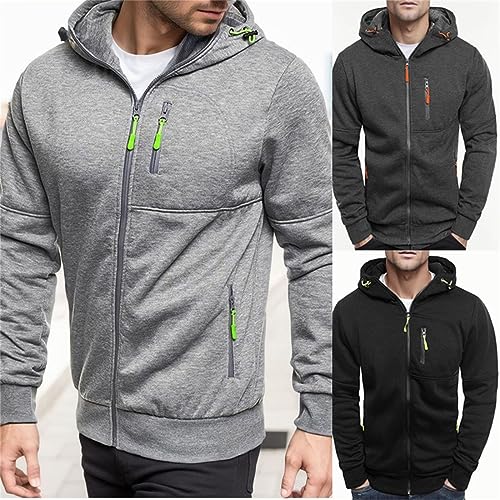 HOT ! Mens Hoodies Zip Up Lightweight Casual Hoodies for Men with Zip Pockets Casual Long Sleeve Sweatshirt Sports Hooded Jacket
