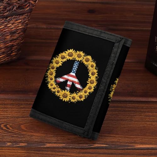 Sunflower U.S. Flag Peace Sign Trifold Men's Wallets with 8 Card Holders Slim Purse Outdoor Money Clip 1