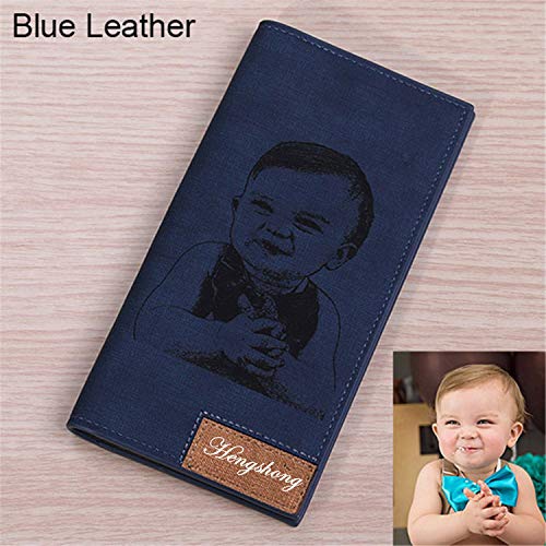 Personalized Mens Long Leather Wallet Custom Engraved photo wallet for Men fathers day gift(Blue Single Side) 5