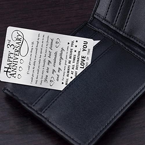 Alotozo Happy 3rd Anniversary Sweet Gifts for Him Husband, Happy 3 Year Wedding Anniversary Engraved Wallet Card Gift for Her Men 6