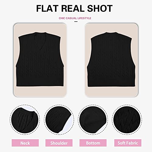 Lailezou Women's V-Neck Knit Sweater Vest Solid Color Argyle Plaid Preppy Style Sleeveless Crop Knit Vest 3