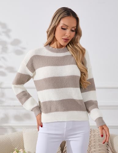 Women's Thick Striped Colorblock Sweater, Fall Spring Sweater Tops, Oversized, Elasticity, Soft, No Pilling, Lightweight 7