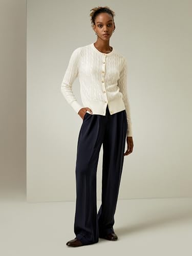 LilySilk 100% Cashmere Crewneck Cardigan Sweater for Women Long Sleeves Cable-Knit Buttoned Placket 1