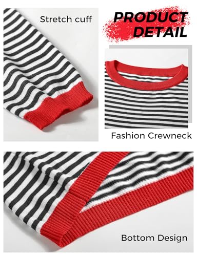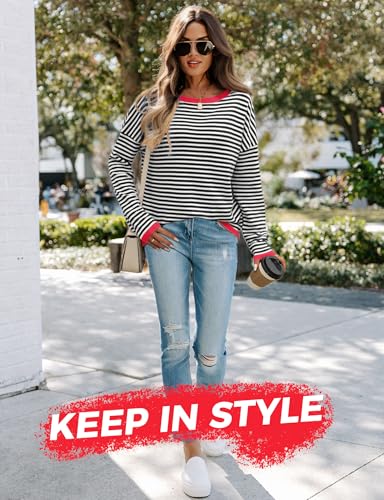HOT ! Buauty Womens Long Sleeve Crewneck Knitted Striped Sweaters Casual Color Block Drop Shoulder Pullover 2025 Trendy Tops