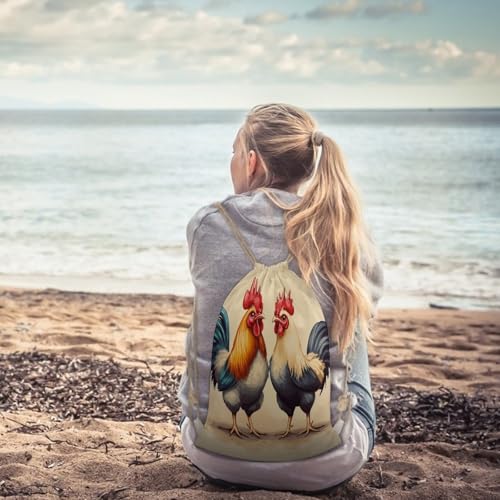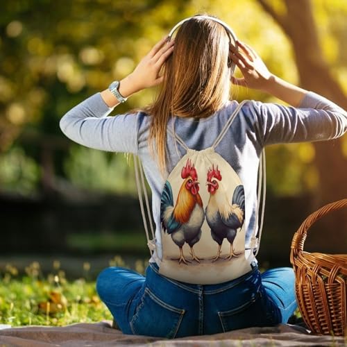 Drawstring Backpack Foldable Draw String Bags Rooster And Hen Sackpack Sports Gym Bag for Shopping Yoga 5