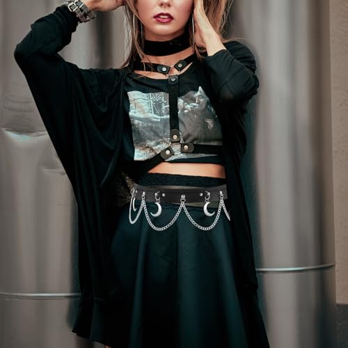 Moon Belt with Leather, Chain Punk Belts for Women, Goth Rave Fashion Harness Party Halloween Jewelry Accessories 5