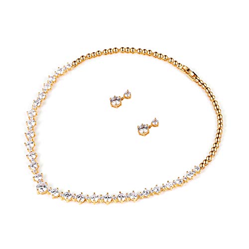 HOT ! WeimanJewelry Silver/Gold Plated Women Cubic Zirconia Round Cut CZ Bridal Necklace and Drop Earring Set for Bride Wedding (Gold)