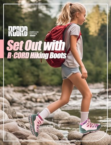 HOT ! R CORD Girls Hiking Boots Waterproof Durable Kids Hiking Boots TPR Traction Hook&Loop Closure Girls Hiking Boots Anti-Skid Athletic Outdoor Boots