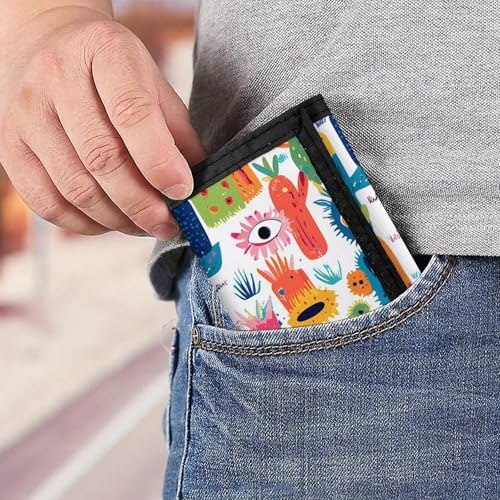Mexican Cactus Devil Eyes Trifold Wallets for Men Women Ultra Thin Card Holder Purse with Zip Coin Pocket