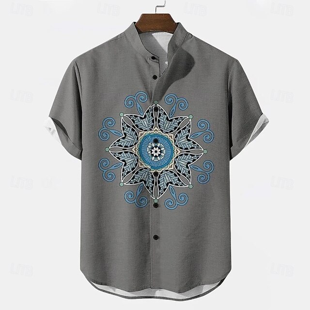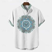 More information about Men's Geometric Floral Print Ethnic Shirt Button Up Shirt Stand Collar Shirt Short Sleeve Vintage Retro Vacation Dailywear Beach Wear Summer Spring Mandarin Collar 3D Print Linen Like Shirt White