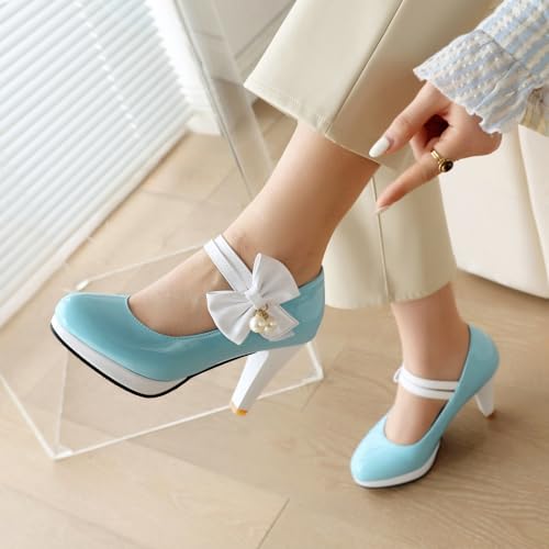 • 【Materials】: This sweet bow high heeled pump is made of high quality PU and non-slip ruber sole. Ankle strap with velcro,adjustable and convenient.