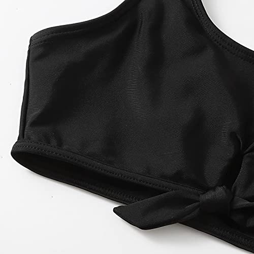 Girl's 3 Piece Cute Swimsuits Sunflower Print Bikini Bathing Suit High Waisted with Cover Cute (Black, 11-12 Years) 5