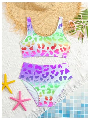 Floerns Girl's 2 Piece Swimsuits Leopard Print Scoop Neck Beach Bathing Suit 2