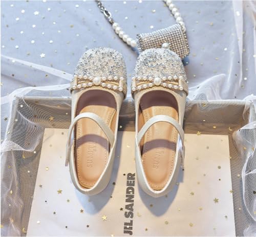 Toddler Girls Sparkly Mary Jane Flats with Bow Flower Girl Wedding Party Princess Dress Shoes 4