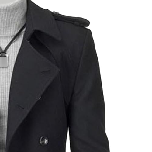 Mens Business Casual Trench Coat Slim Fit Notched Collar Warm Long Overcoat Fall Winter Double Breasted Pea Coat 3