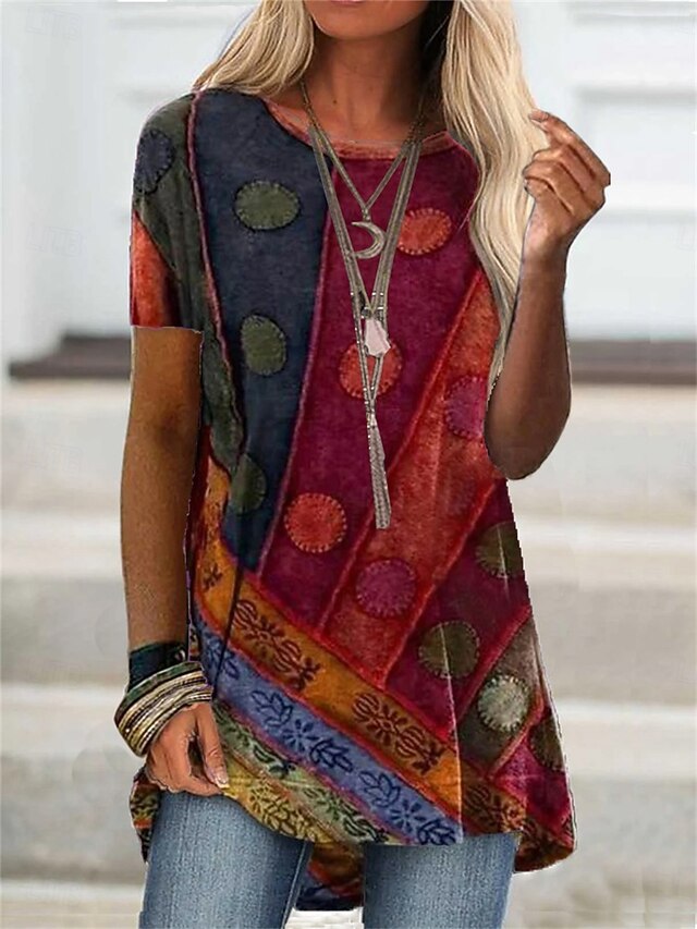 Women's T Shirt Graphic Fashion Modern Casual Short Sleeve Crew Neck Regular Tops Daily Weekend Print Wine Blue Purple Orange Summer Spring 9