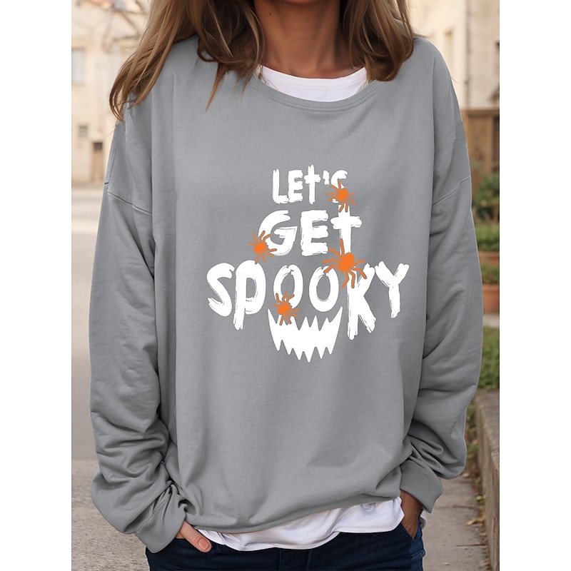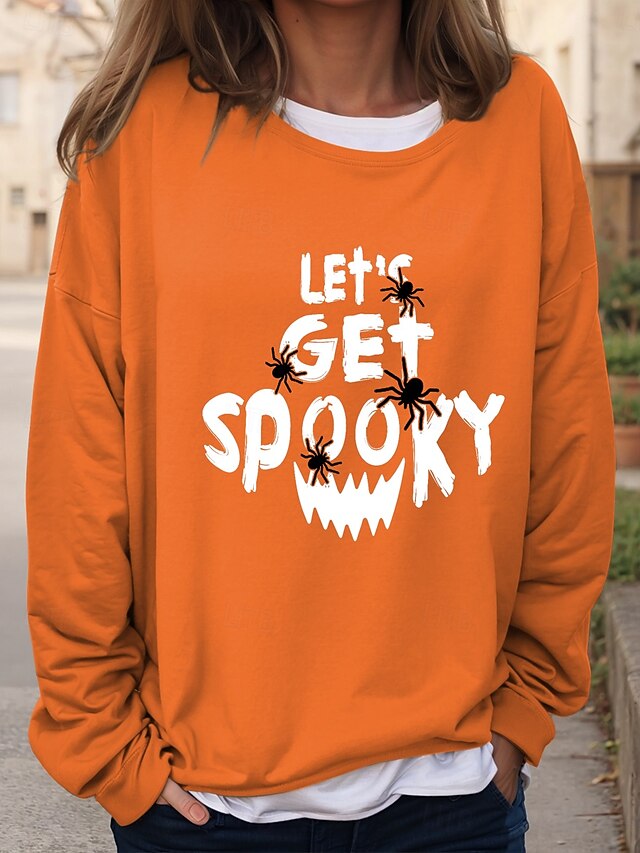 Halloween Women's Sweatshirts Pumpkin Graphic Casual Long Sleeve Crew Neck Regular Tops Casual Print Black Blue Orange Green Khaki Fall Winter 13