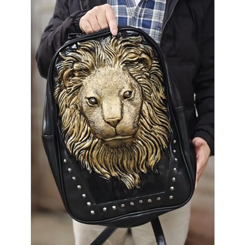 Men 3D Lion Head Backpack Casual Daily Use Bookbag Shoulder Outdoor Travel Hiking Bag 3