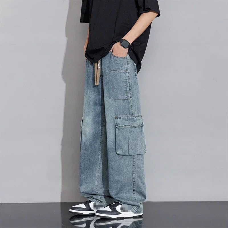 Large Size Jeans Men's Spring Fall Loose high Street Workwear Casual Straight Pants Wide Leg Pants 4