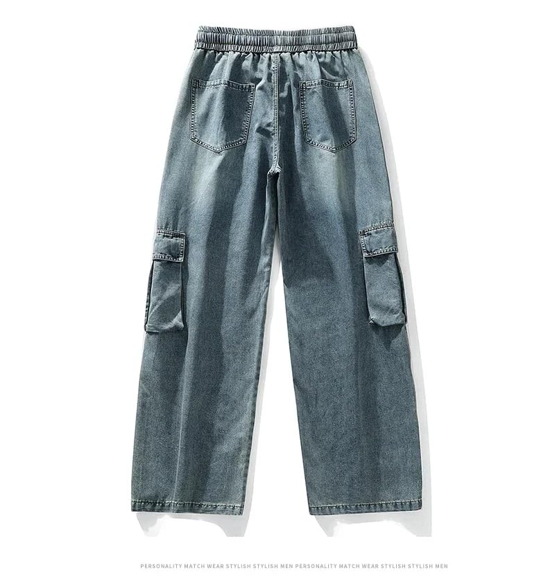 Large Size Jeans Men's Spring Fall Loose high Street Workwear Casual Straight Pants Wide Leg Pants 7
