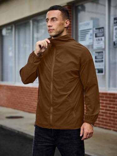 • [High Quality Fabric] - Men's windbreaker is crafted with a premium fabric blend of 90% nylon and 10% spandex, windbreaker jackets for men it boasts excellent breathability and high elasticity. The soft and lightweight texture ensures no restriction during daily activities or sports, keeping you dry and comfortable even for long hours of wear, easily adapting to various wearing scenarios.