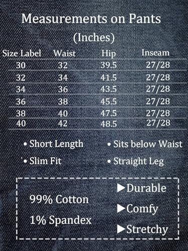 • Short Length Jeans for Men: 27 and 28 inches inseam for short legged guys with smart look, no more rehemming or excessive stacking on the feet