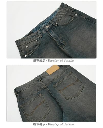 More information about Jeans Pants Trouser Denim Street Trendy Water Washed Blue Wear and Tear Hole Casual Straight for Men