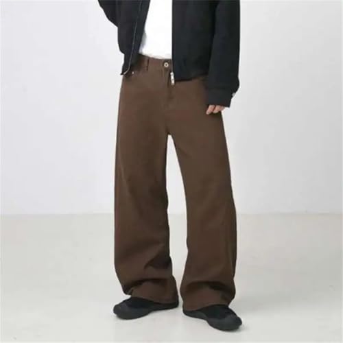 HOT ! Men's Denim Pants Solid Color Straight Trousers Wide Leg Loose Bottom Streetwear Jeans