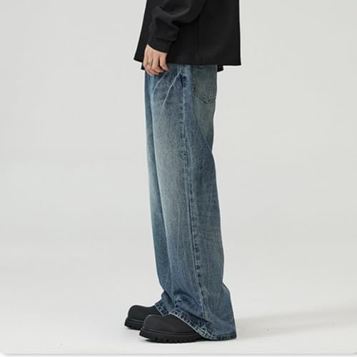 More information about Mens Hip Hop Straight Leg Jeans Vintage Washed Loose Fit Skater Flared Denim Pants