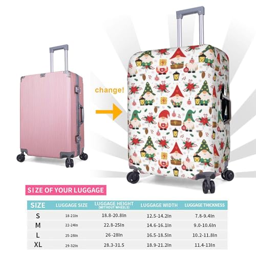 • 4 SIZES AVAILABLE : Cute Gnome print Luggage protector, S: fits 18-21 inches suitcases, M: fits 22-24 inches suitcases, L: fits 25-28 inches suitcases, XL: fits 29-32 inches suitcases. Please measure your luggage size before purchase. Luggage cover only, luggage not included.